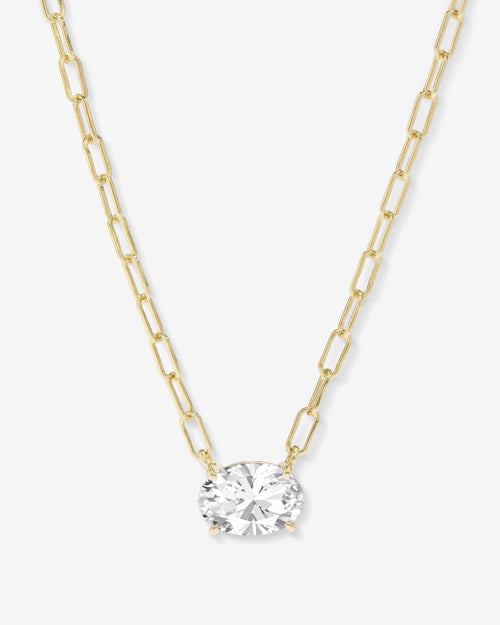 Ashley Chain Link Necklace 9mm - Mixed Metal|White Diamondettes Ashley Chain Link Necklace 9mm - Mixed Metal|White Diamondettes -
