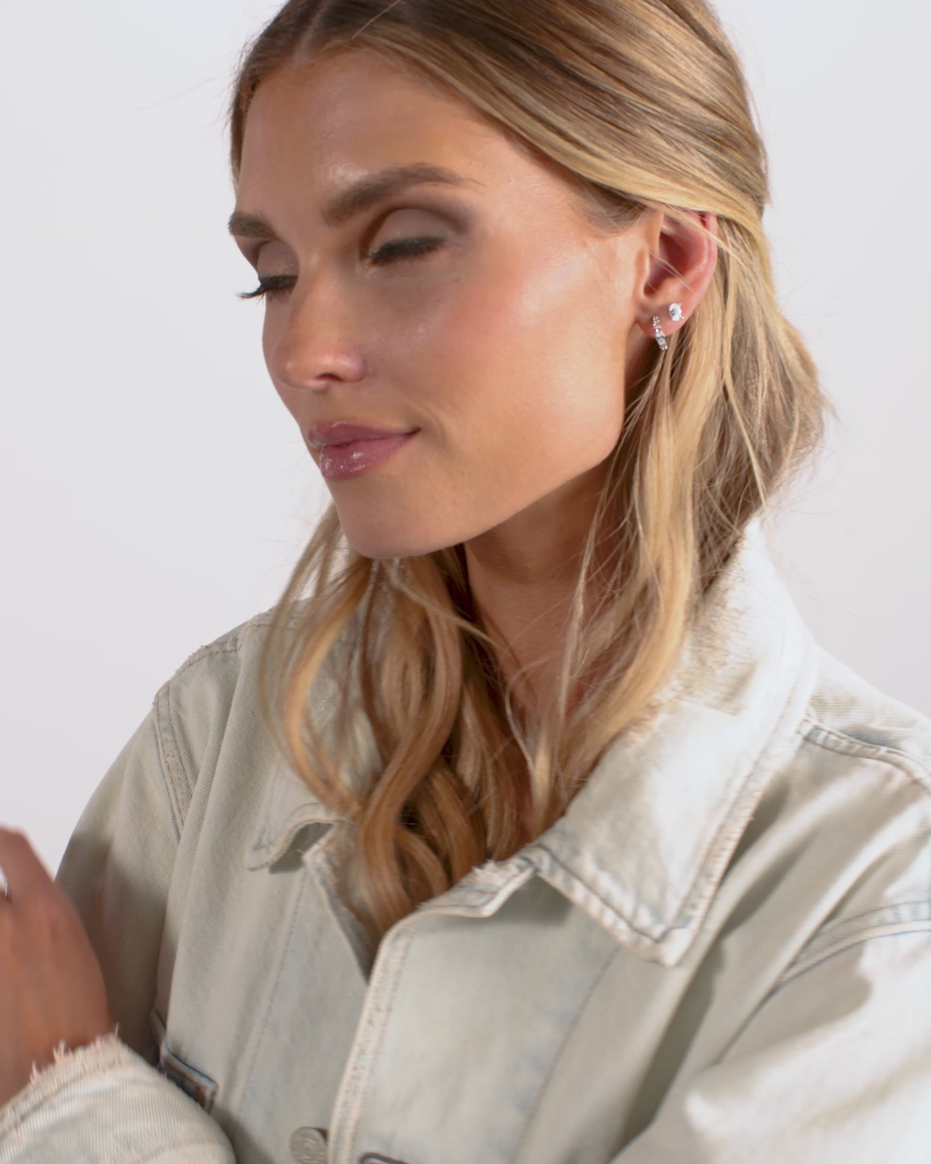 Illuminate your jewelry rotation with The Maven Huggies, a contemporary masterpiece designed for the woman on the move. These dainty silver-plated hoops feature our signature Horizon Setting, utilizing a minimalist half-bezel and open sides to capture light from every angle. The delicate and thin silhouette showcases brilliant simulated diamonds, offering a luxury aesthetic that remains simple enough for everyday wear. Whether you are dressing for a formal event or adding a classy touch to a casual outfit, these elegant huggies provide a fine jewelry feel with a trendy edge. Their fluid, modern profile makes them an essential statement piece for any curated ear stack. Discover the perfect pairing by browsing our handcrafted earrings or find more aesthetic styles in our jewelry huggies collection today for a classic finish.
