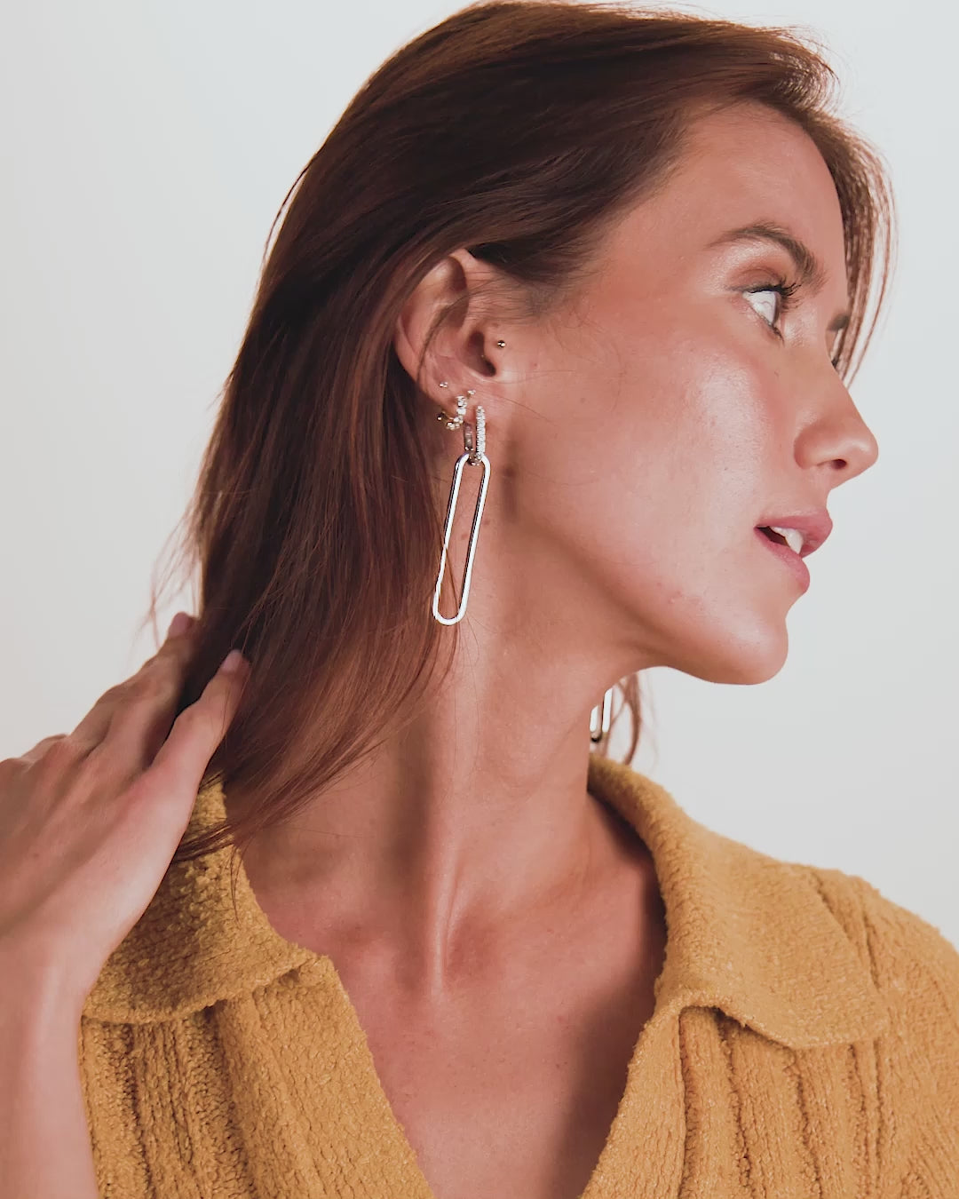 Redefine your jewelry wardrobe with the XL Carrie Convertible Huggies, a standout addition to your signature collection. These high-polish silver earrings feature a bold, oversized silhouette adorned with shimmering simulated diamonds for a touch of luxury. Designed for the modern woman, the removable link offers endless versatility - wear them as simple huggies for an everyday look or as edgy drops for formal events. Whether you lean toward a minimalist vibe or a statement-making aesthetic, these contemporary pieces provide a classy finish to any outfit. Create your own unique style by browsing our jewelry huggies or pair them with our elegant statement chains for a fully coordinated, fine jewelry appearance that feels both classic and trendy.