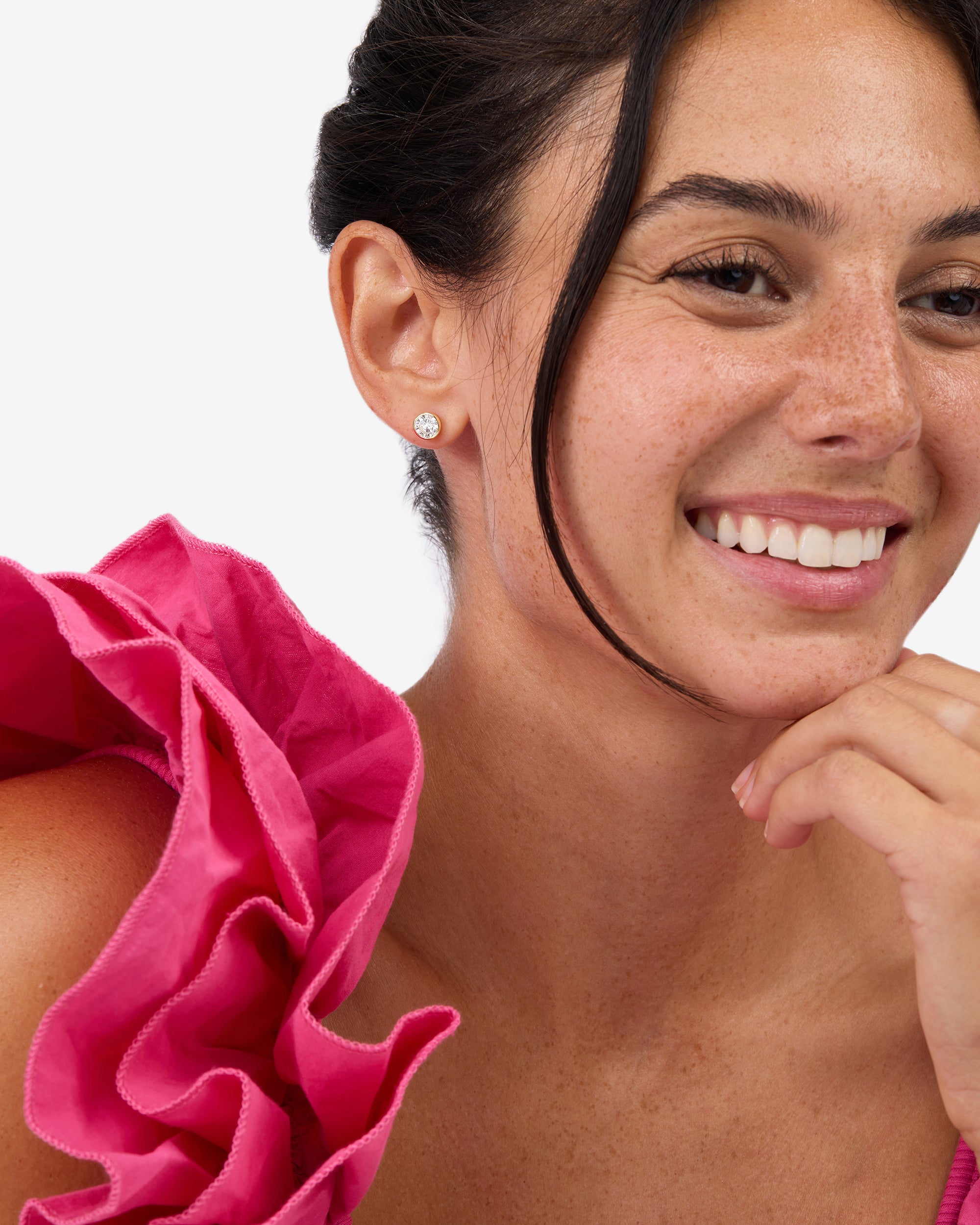 Our best-selling Baroness Collection NEEDED a stud earring. With a bezel-set simulated diamond the Baroness studs are always in fashion whether you wear them solo or as part of a MAJOR ear stack. These are the earrings you’ll ALWAYS reach for.