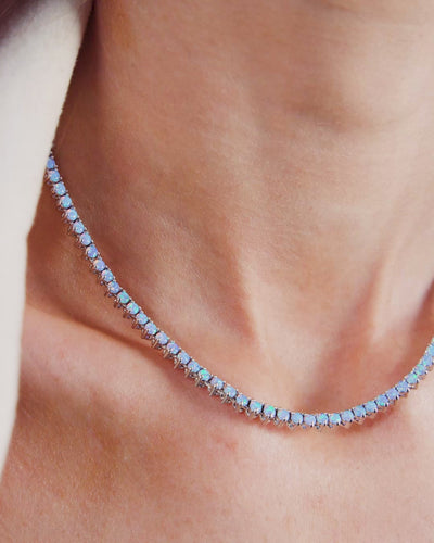 Not Your Basic Tennis Necklace - Silver|Blue Opal