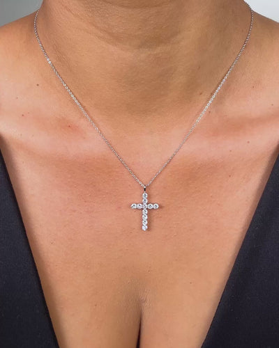 "Oh She Fancy" Small Cross Pendant - Silver|White Diamondettes