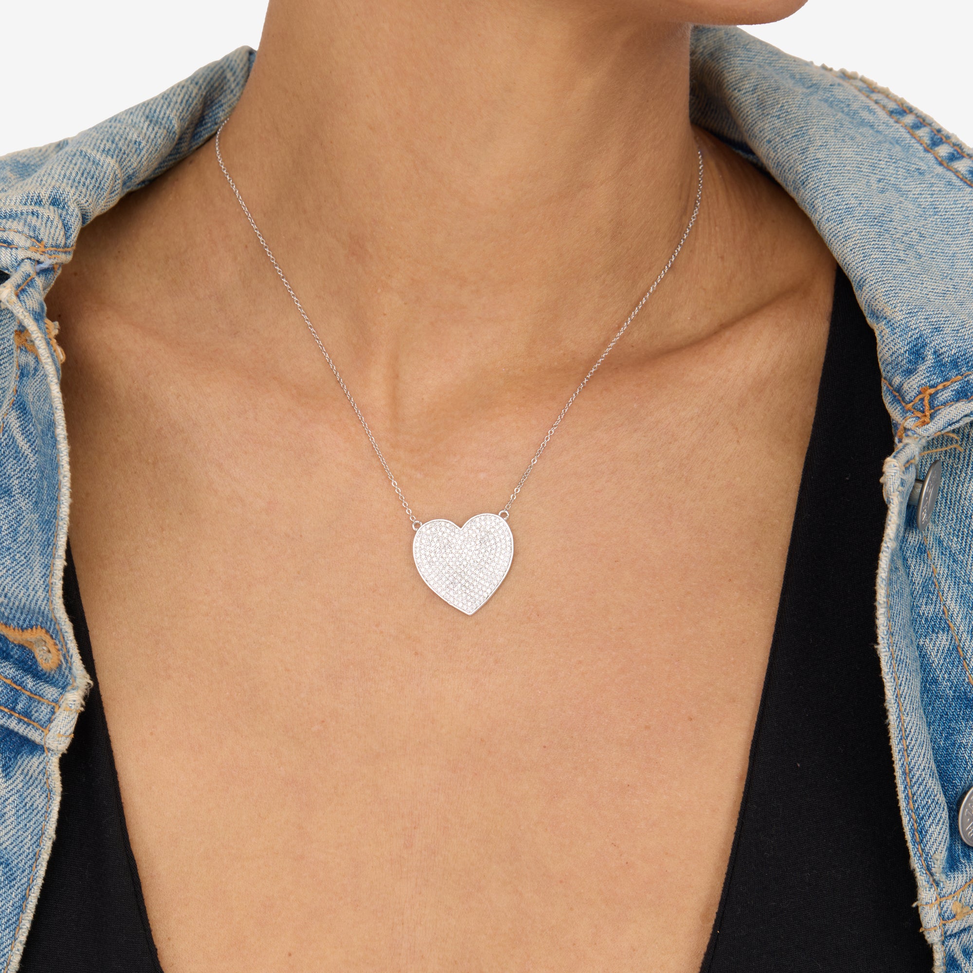 XL You Have My Whole Heart Pavé Necklace - Silver|White Diamondettes
